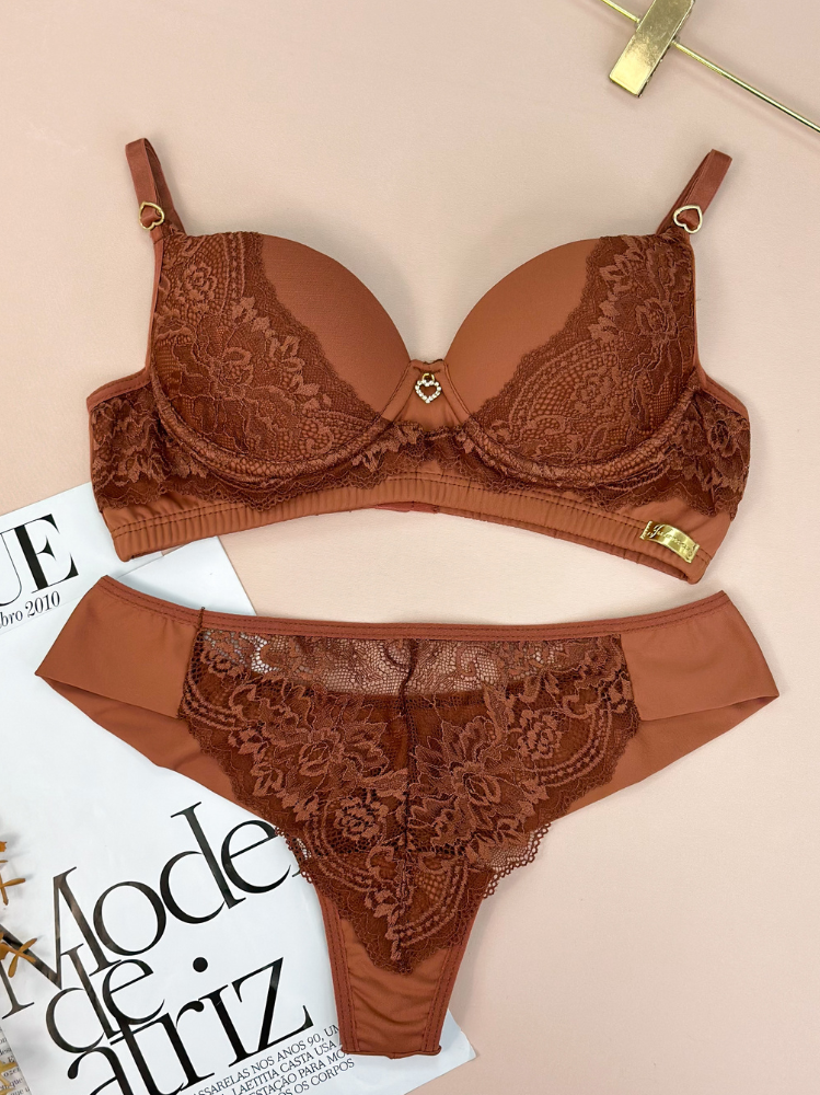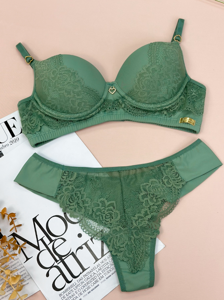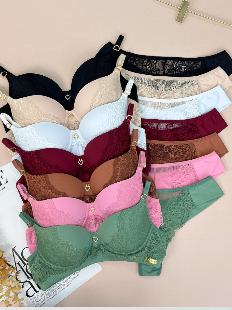 O sutiã é confeccionado em microfibra e possui detalhes delicados em renda. A calcinha é semifio de microfibra com renda, linda e confortável!